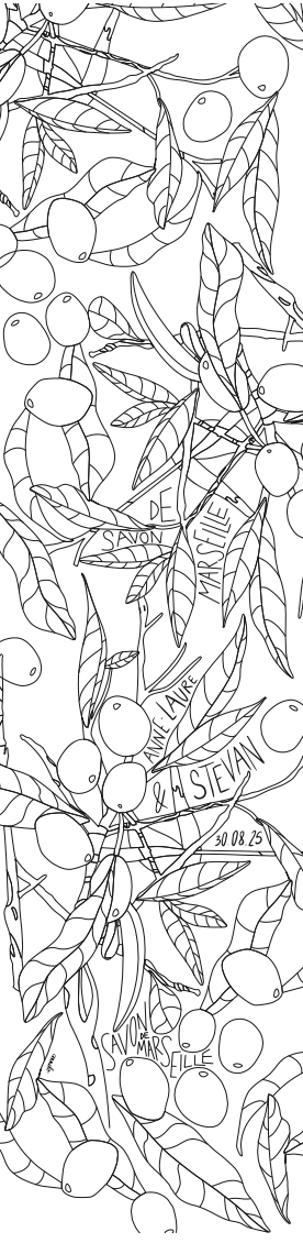 Création d’une illustration pour entourer des savons de Marseille à l’occasion d’un mariage.